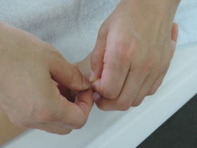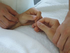 手足のツボで気の調整をおこないます。自然治癒力を最も自然に発揮できるよう調整します。どの患者さんにもまず最初に本治法を施します。